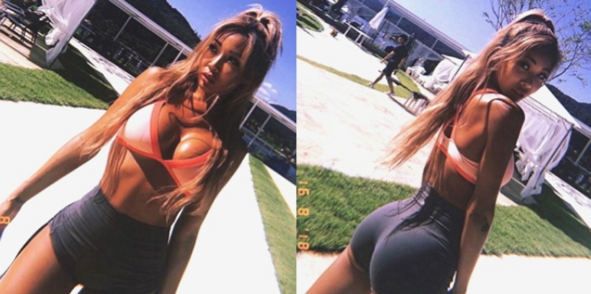 그는 코랄 핑크색 비키니와 짧은 핫팬츠를 입고 두 눈을 사로잡는 육감적인 몸매를 자신감 있게 뽐냈다.