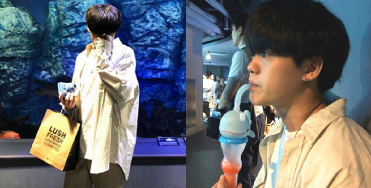 사진 속 이병재는 슬러시를 손에 들고 아쿠아리움 등을 관람하며 여유로운 시간을 즐기고 있다.