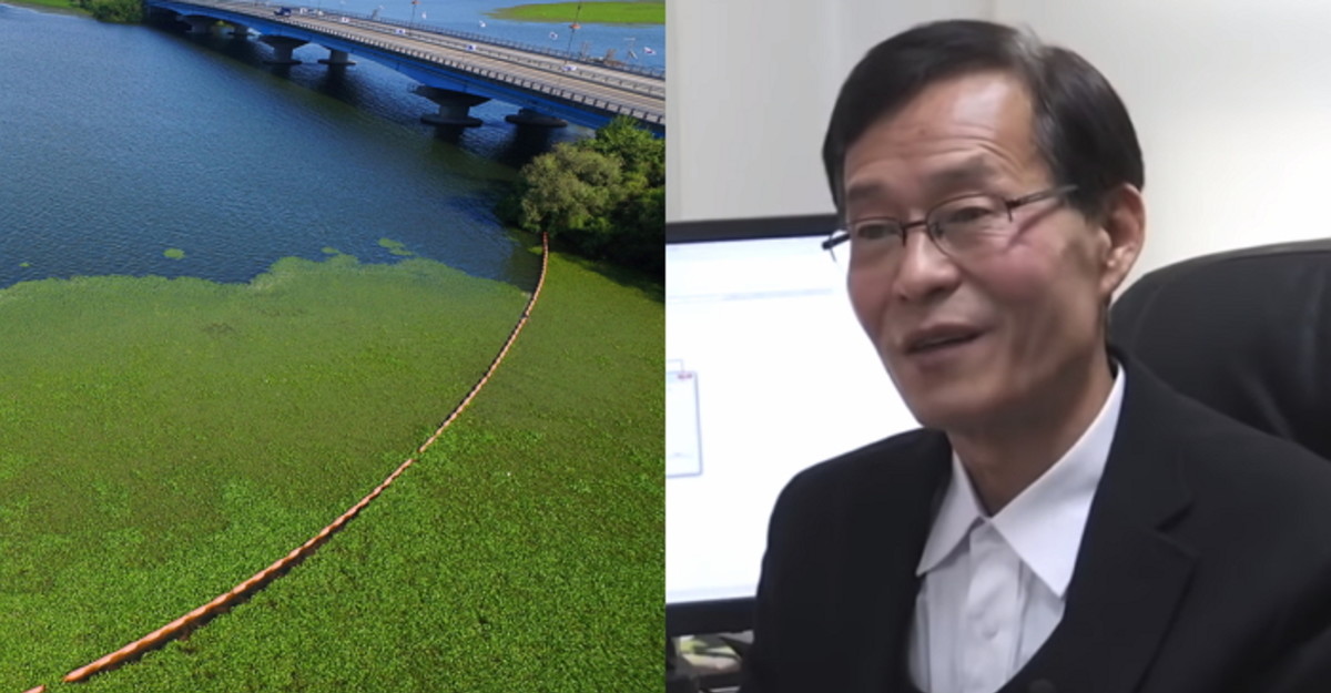초록 물감을 푼 듯 녹조가 잔뜩 껴있는 낙동강 상황 / 뉴스1