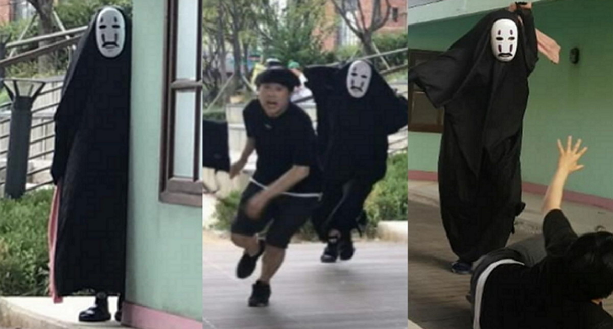 공개된 사진 속 검은 천으로 온 몸을 칭칭 뒤감고 하얀 가면을 써 머리부터 발끝까지 완벽하게 가오나시로 변신한 이는 벽 뒤에 몰래 숨어 누군가를 기다렸다.