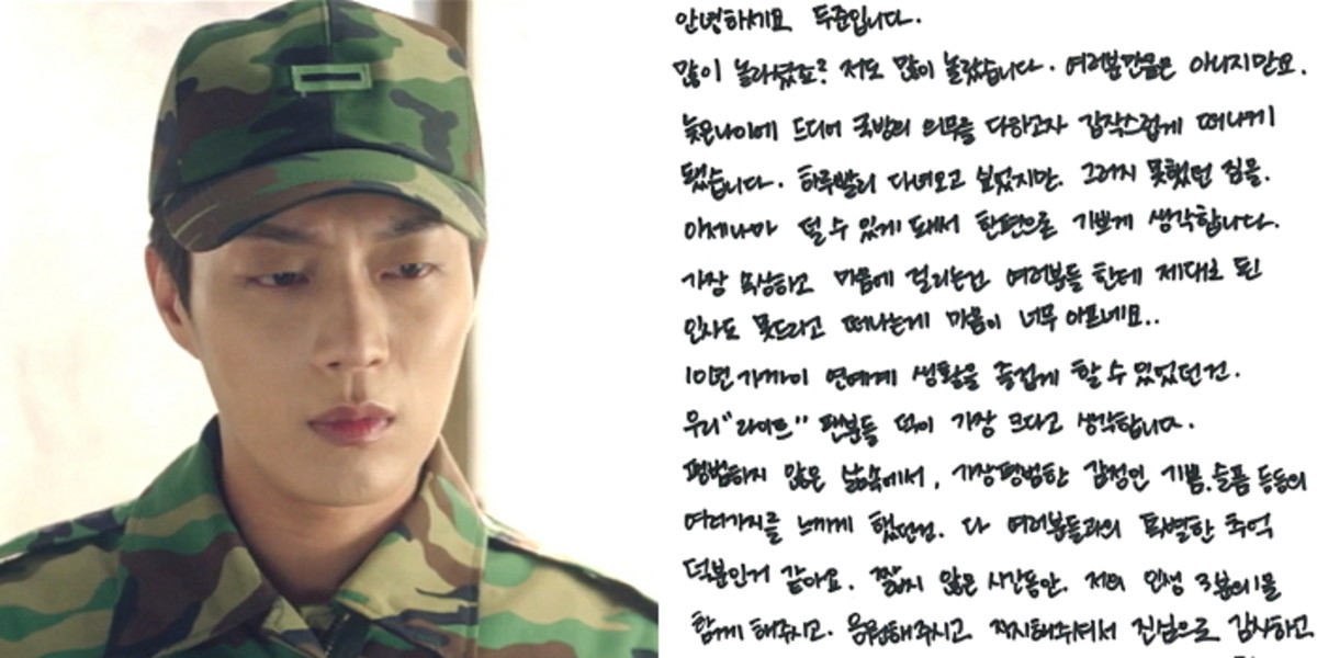 이날 윤두준은 갑작스러운 소식을 접하고 놀랐을 팬들을 위해 자필로 쓴 편지를 공개했다.