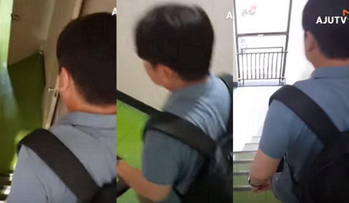 영상에서 안 전 대표는 마치 빨리 감기를 한 것처럼 빠른 속도로 비상계단을 내려가고 있다.