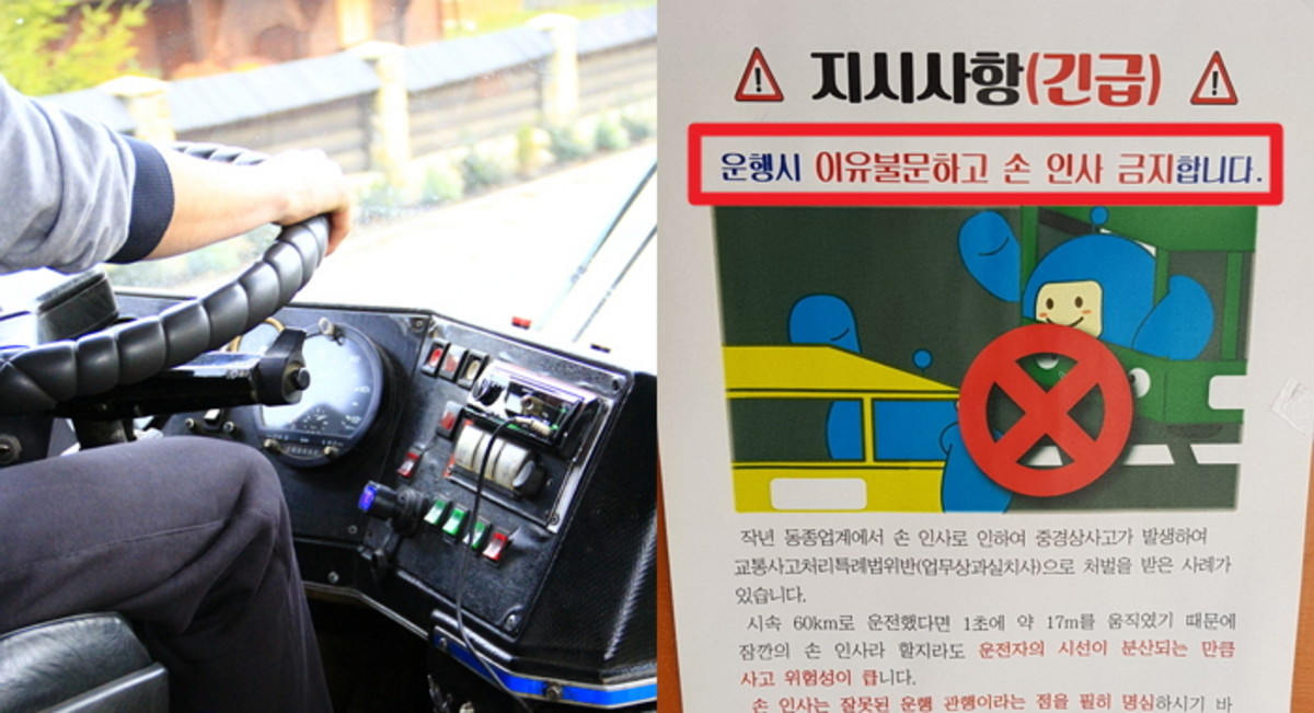 최근 한 버스 회사는 공지문을 통해 "운행 시 이유 불문하고 손 인사 금지한다"고 지시했다.