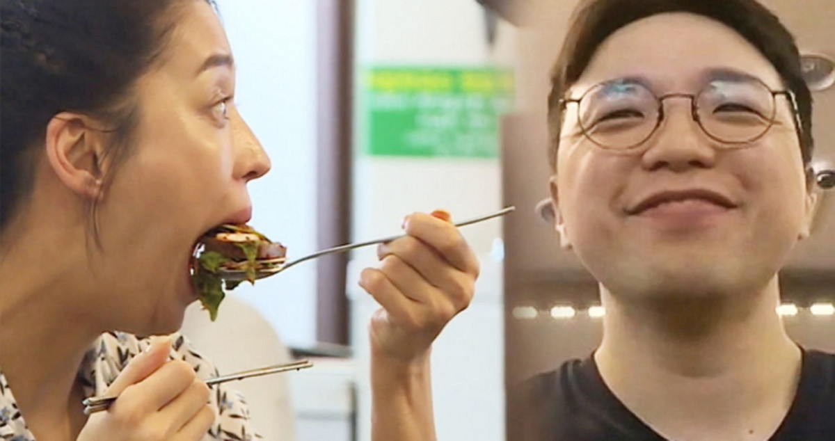 한고은은 음식이 나오자 마치 신들린 듯한 젓가락질로 국수를 비비기 시작했다.