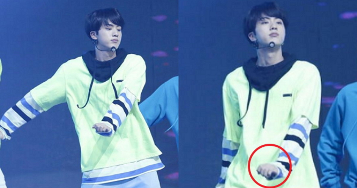 평소 남자다운 외모의 진이 이미지와는 정 반대의 귀여운 주먹을 보였기 때문이다.