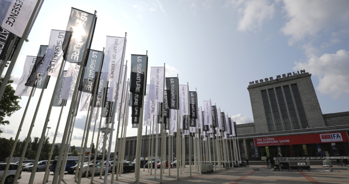 29일 LG전자는 현지 시간으로 오는 31일부터 9월 5일까지 독일 베를린 현지에서 열리는 'IFA 2018' 메세 베를린 입구에 'LG 시그니처(LG SIGNATURE)' 깃발을 내걸었다고 밝혔다.