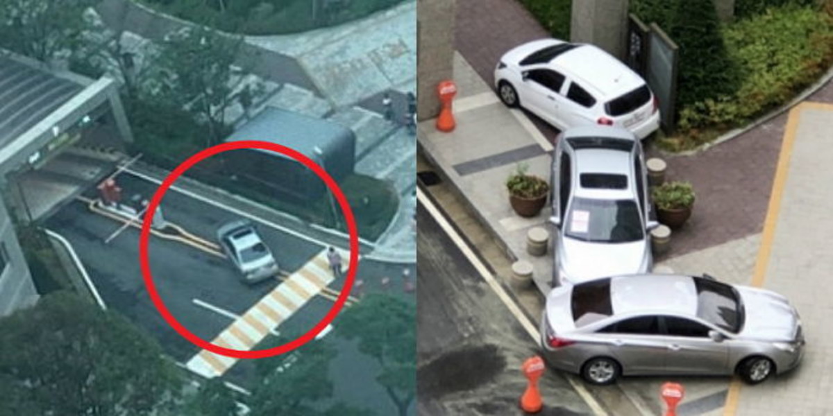 주민들은 A씨가 차를 몰래 빼가지 못하도록 앞뒤에 다른 차 2대를 대고 옆을 경계석으로 막아뒀다.