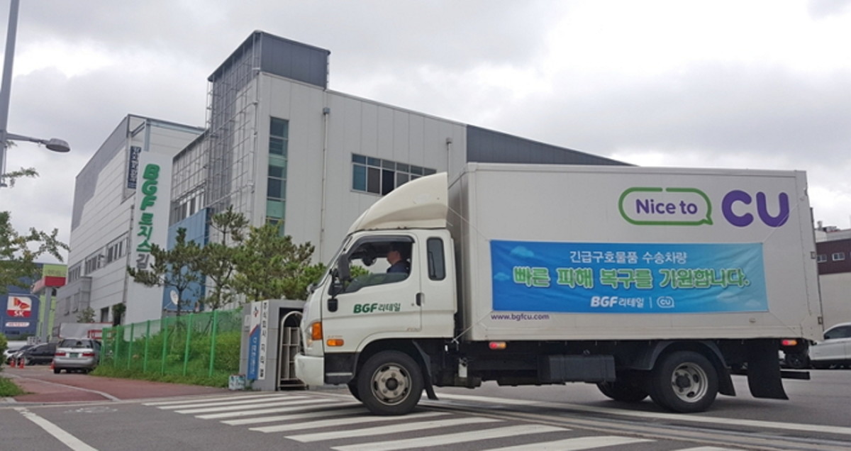 BGF리테일은 행정안전부, (사)전국재해구호협회와 핫라인을 구축해 긴급지원 요청을 받자마자 즉시 해당 지역의 물류 네트워크를 이용해 식품과 생필품을 수송했다.