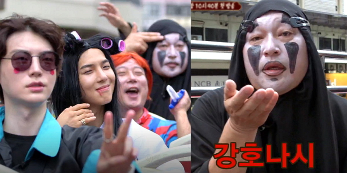 애니메이션 '센과 치히로의 행방불명' 속 가오나시로 분한 강호동을 비롯해 은지원은 저승사자, 이수근은 처키, 안재현은 강시, 송민호는 처녀귀신으로 분장했다.