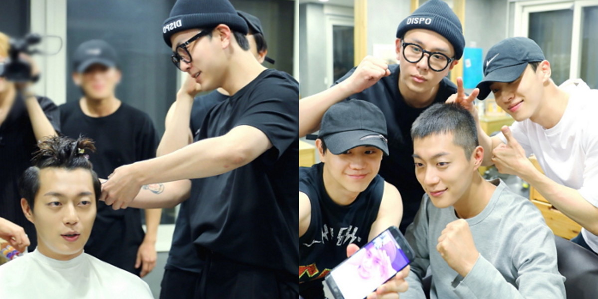 윤두준이 머리를 다 자르고 난 뒤 하이라이트 멤버들은 함께 모여 다정하게 사진을 찍으며 그 순간을 소중한 추억으로 기록했다.