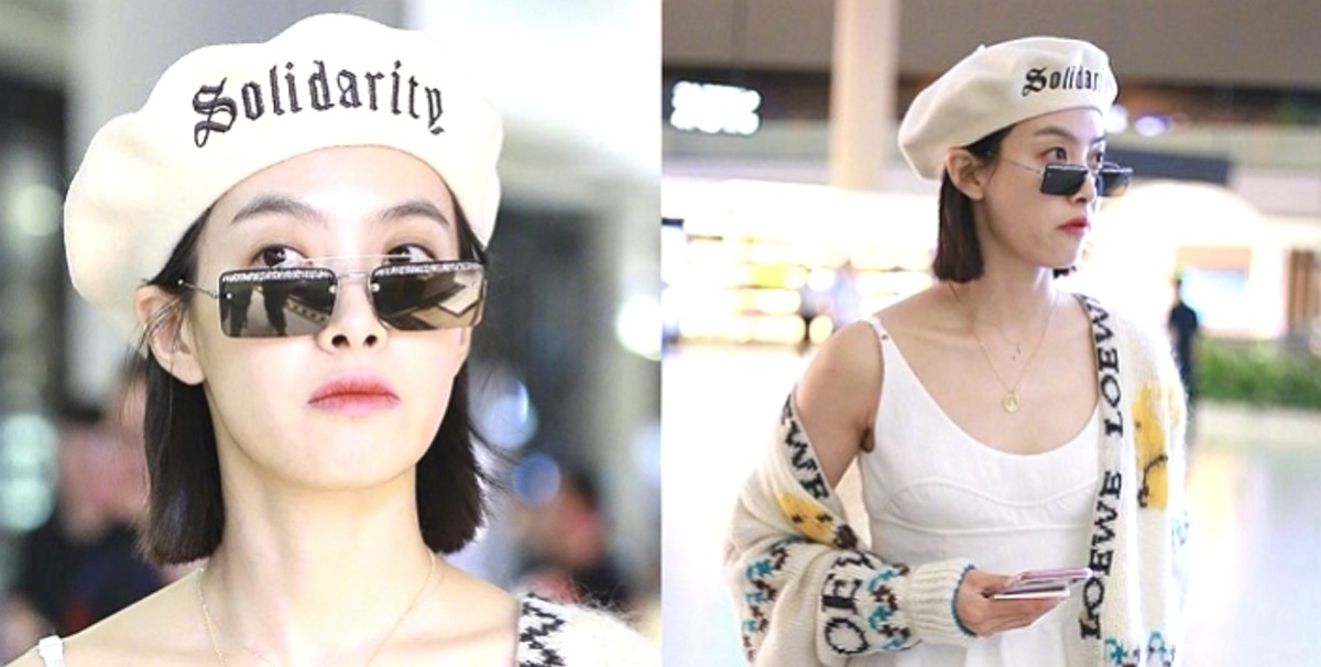여기에 베레모 모자와 좌우로 긴 직사각형 모양의 선글라스로 패션을 완성했다.