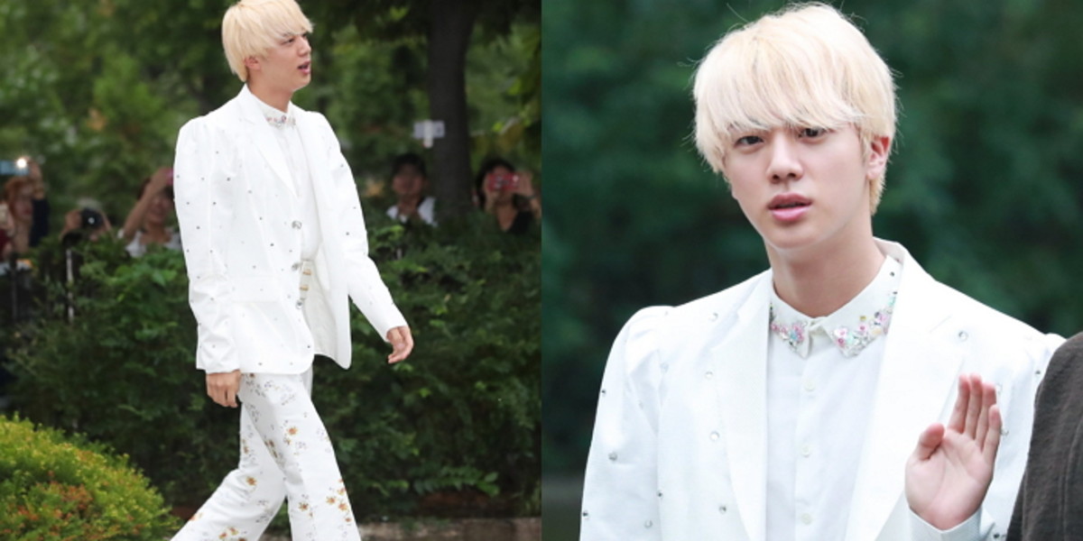 일상복 차림의 멤버들과 달리 진은 'LOVE YOURSELF 結 Answer' 앨범 콘셉트 포토 속 의상을 그대로 입고 나타났다.
