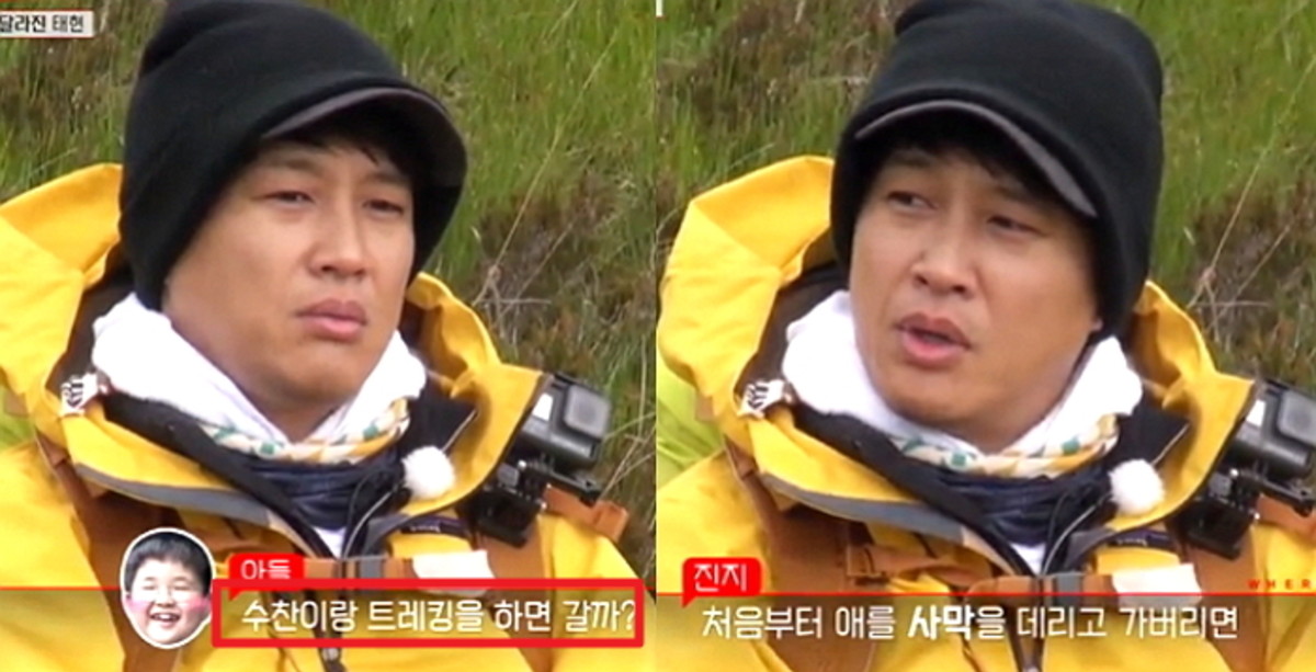 그는 "트래킹은 매력 있는 거 같다. 수찬이랑 트레킹을 하면 (걔가) 갈까? 사막부터 가자고 하면 싫어하겠지?"라고 동료들에게 물어보며 가족들과의 여행을 상상했다.