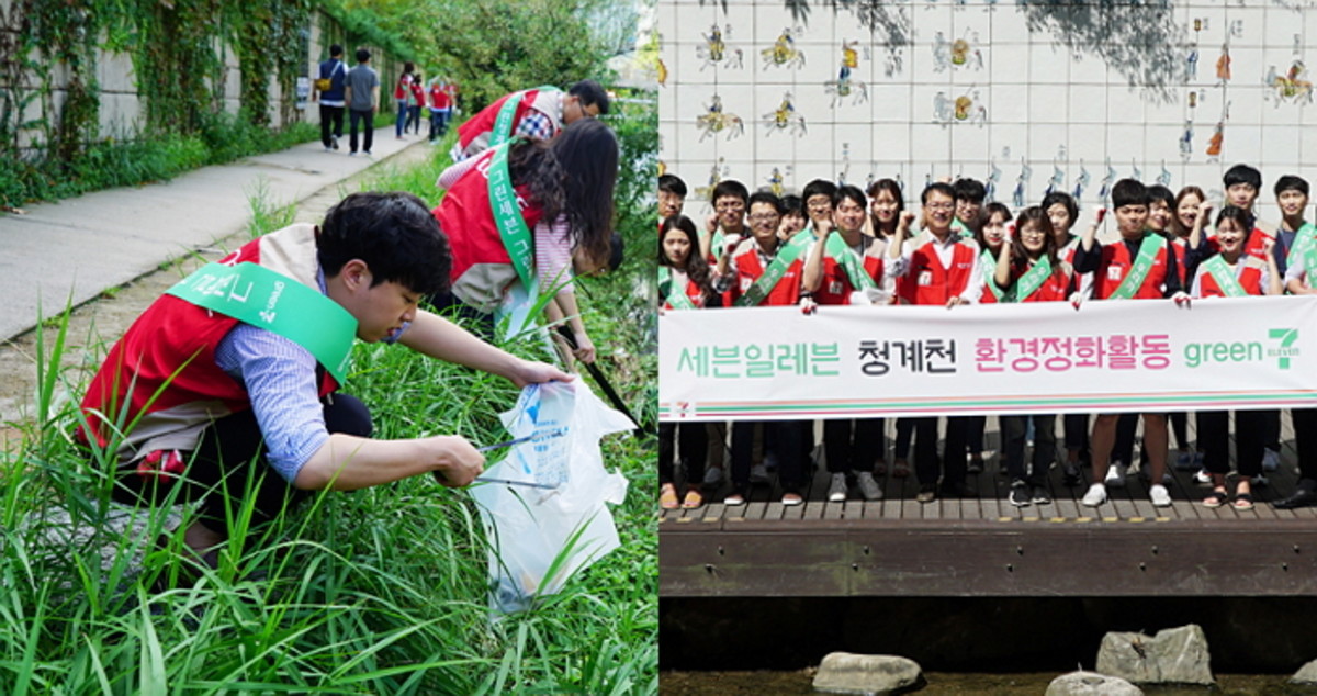 세븐일레븐 임직원으로 구성된 '샤롯데봉사단'은 지난 5일 친환경 캠페인 '그린 세븐(Green 7)'의 일환으로 임직원 30여명과 함께 청계천 인근 산책로에 버려진 플라스틱, 페트병 등 쓰레기를 수거하며 청계천 일대 환경 정화 활동을 진행한 바 있다.