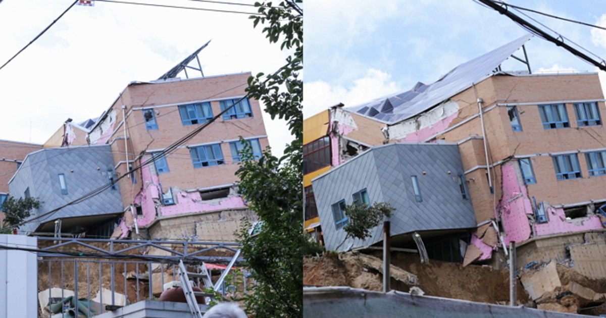[인사이트] 김천 기자 = 서울 동작구 한 공동주택 공사현장에서 지반 침하가 일어나 인근 유치원 건물이 기울어졌다.