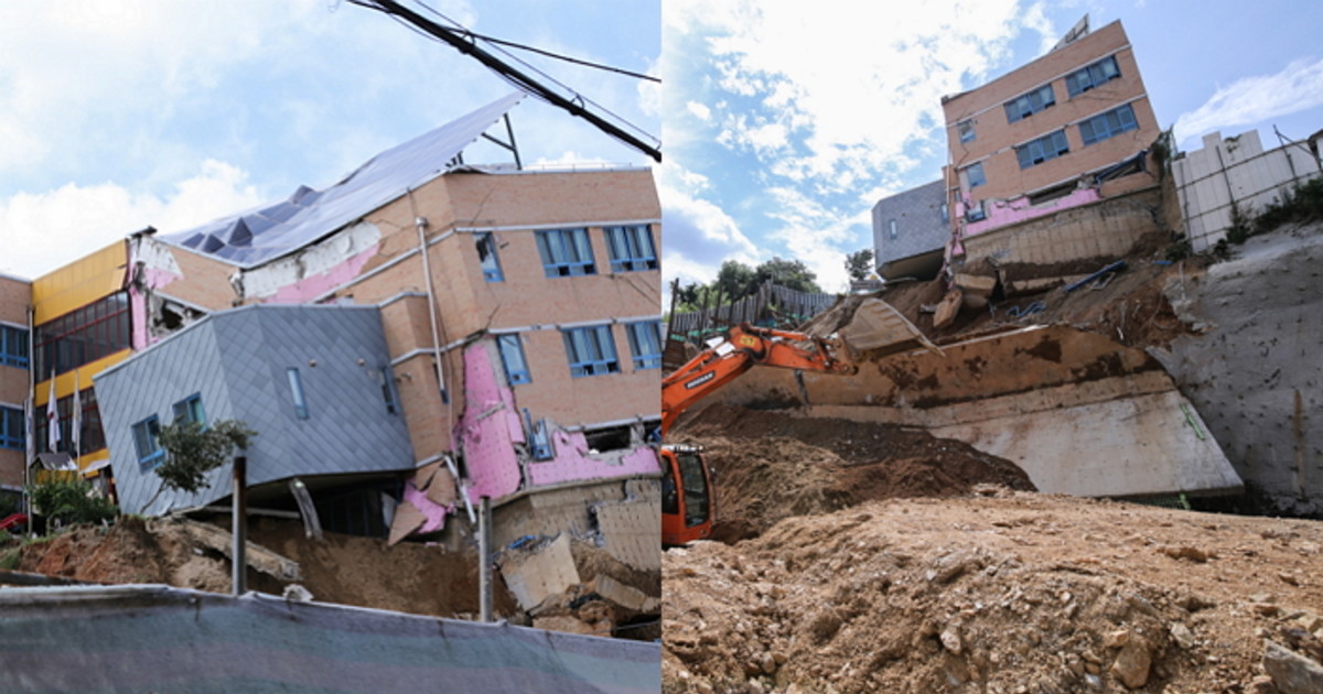 결국 우려했던 사태가 벌어졌다. 폭우로 지반이 약해지면서 지난 6일 오후 11시 22분께 공사장 흙막이가 무너졌고 이 여파로 상도유치원이 20도 가까이 기울었다.