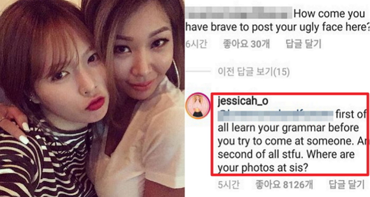 이 악플러는 영어로 "못생긴 얼굴 사진 올릴 용기가 어디서 나왔느냐"며 현아의 외모를 비하했다.