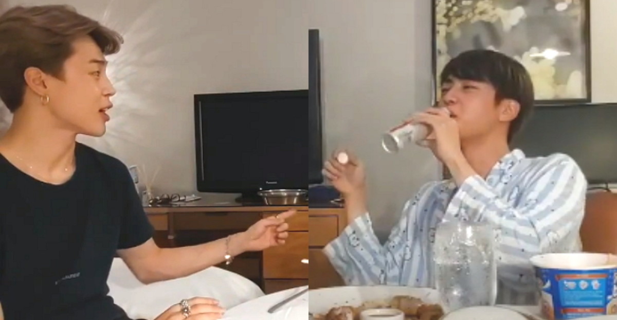 지민은 "일리는 있는 말이지만 (방송 중이니) 나중에 방 안에서 혼자 드세요"라고 진을 말렸다.