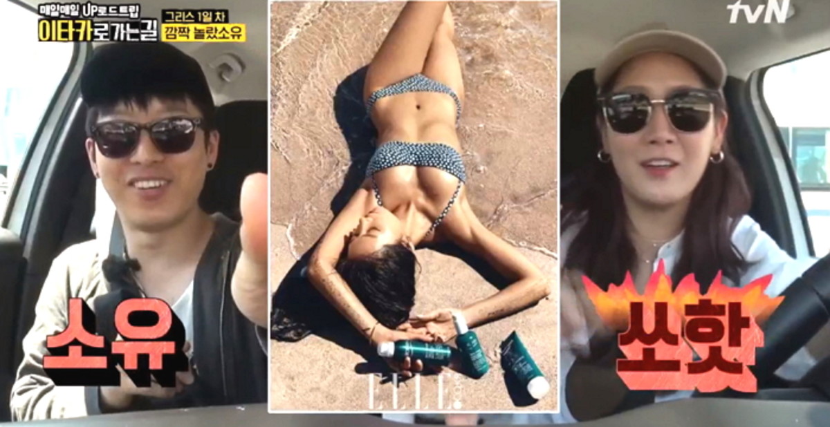 사진은 비키니를 입은 소유의 화보 컷이었다. 소유가 "저요"라고 답하자 하현우는 "정말요?"라고 되물어 소유를 폭소하게 했다.