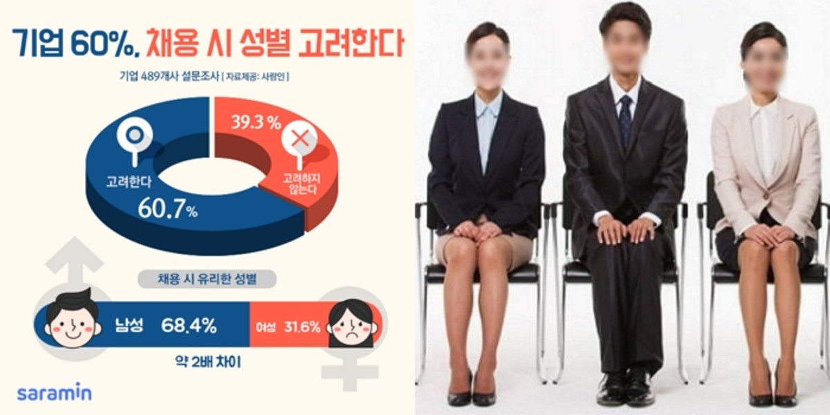 이 결과, 응답 기업의 절반이 넘는 60.7%가 '채용 시 성별을 고려한다'고 답했다.