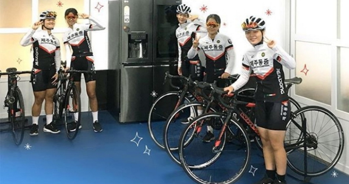 [인사이트] 장영훈 기자 = LG전자 DIOS 얼음정수기냉장고가 훈련장이 없어 땡볕 도로 위에서 훈련하는 제주동중학교 5인조 여자사이클부에게 1천만원 상당의 사이클 용품을 선물했다.