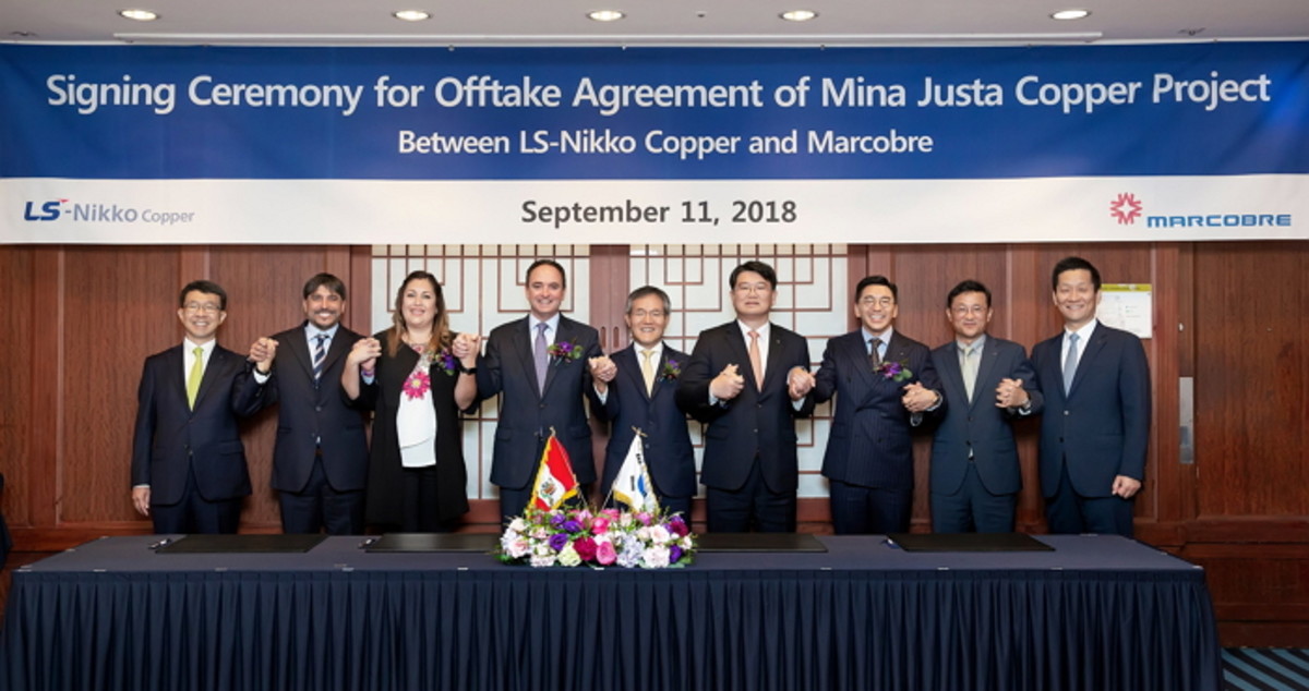 11일 LS니꼬동제련은 서울 그랜드인터켄티넨탈 호텔에서 열린 조인식에서 페루 광산기업 민수르(Minsur)와 미나 후스타(Mina Justa) 동광산 장기구매계약을 체결했다고 밝혔다.