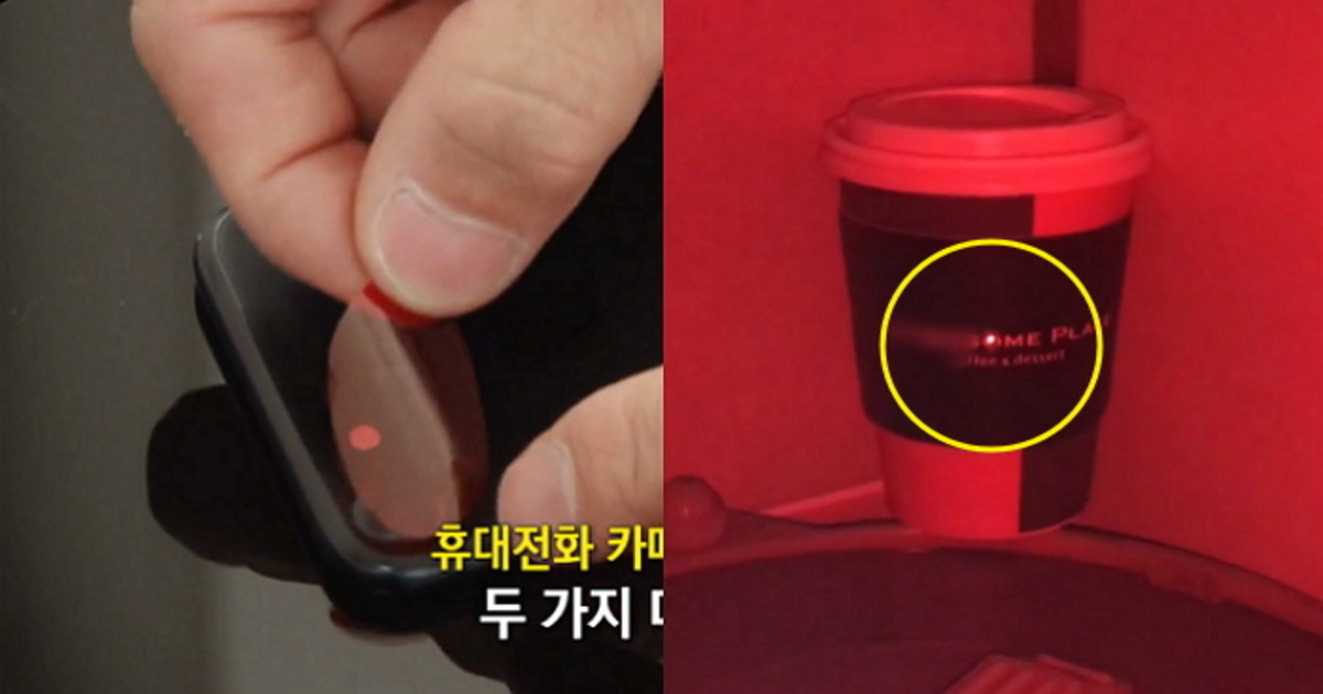 먼저 휴대폰 카메라 렌즈와 플래시에 빨간 셀로판지를 붙인다. 그리고 영상 촬영 모드에서 플래시를 켠 채 카메라가 숨겨진 곳을 촬영한다.
