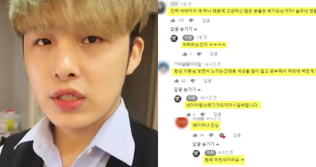 그 중 한 누리꾼이 "왜 이러냐 진심"이라며 이환의 영상에 비난 섞인 댓글을 달았다.
