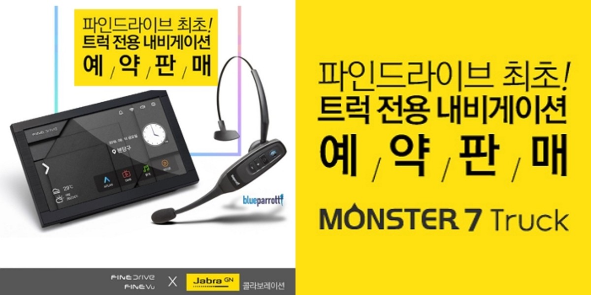 이 기간에 '파인드라이브 몬스터 7 트럭'을 구매하는 고객에게는 할인 가격에 제공하는 것은 물론, 150년 전통의 블루투스 명가 자브라와의 특별 콜라보레이션을 통해 전문 운송인을 위한 20만원 상당의 프리미엄 헤드셋(C400-XT)을 특별 사은품으로 증정한다.
