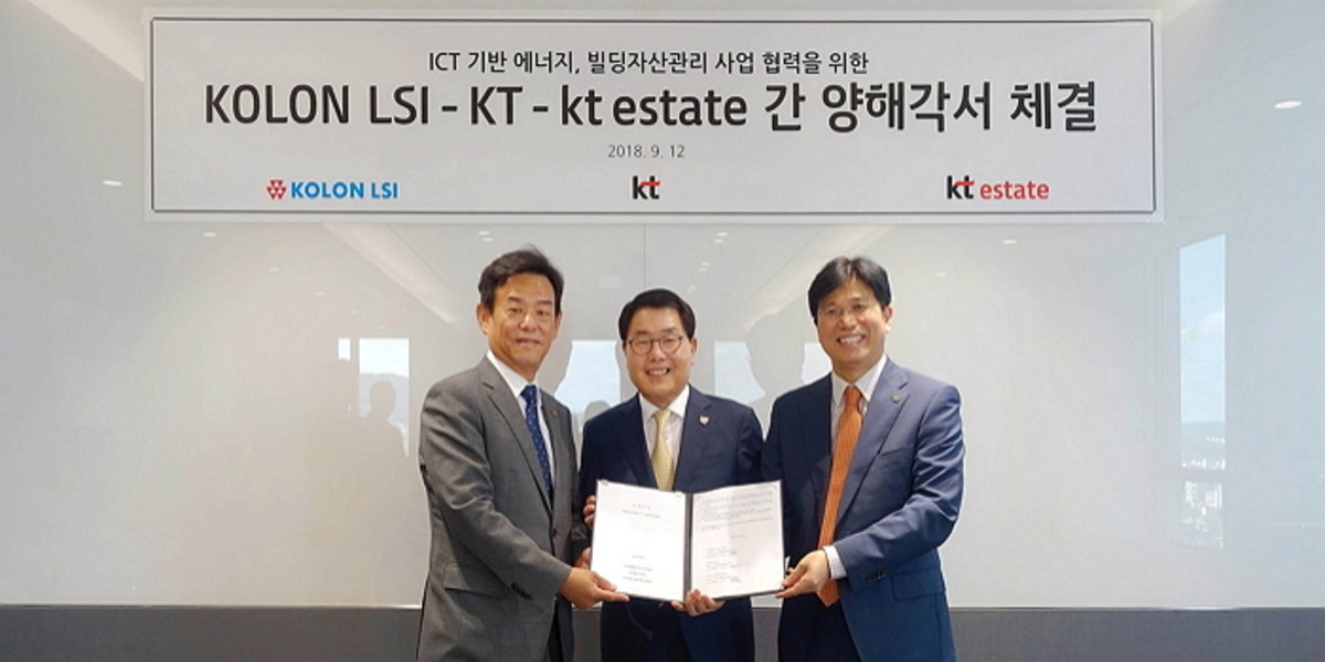 코오롱LSI는 정보통신기업 KT와 종합부동산 회사 KT에스테이트와 협력해 부동산 자산관리 사업을 강화하고 차별화된 부동산 운영관리 서비스를 제공하고자 이번 협약을 체결했다.