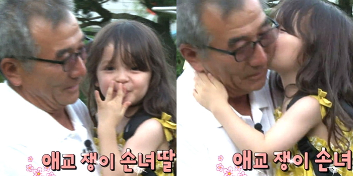 그리고는 할아버지 품에 쏙 안겨 사랑스러운 볼 뽀뽀를 선사하고 예쁜 눈웃음을 지어 보였다.