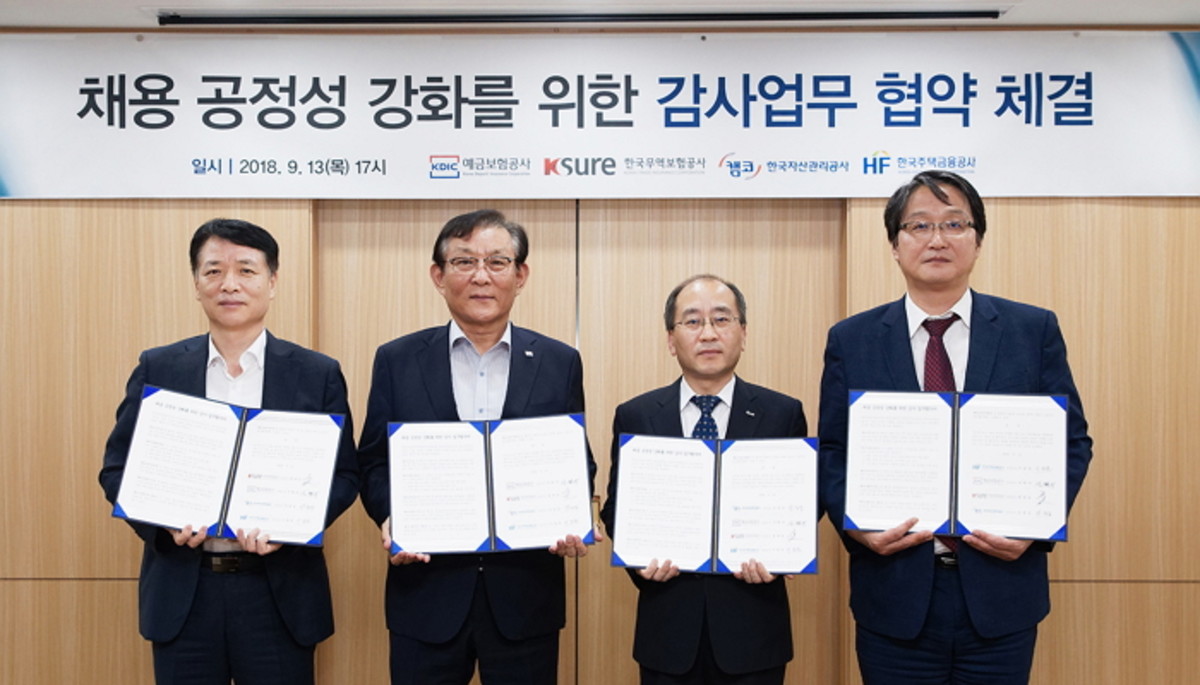 13일 예금보험공사는 한국무역보험공사, 한국자산관리공사, 한국주택금융공사와 손잡고 '채용 공정성 강화를 위한 감사업무 협약'을 체결했다고 밝혔다.