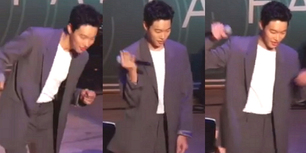 류준열은 무대 앞에서 재생되는 방탄소년단 춤 영상을 보면서 열심히 방탄소년단의 안무를 따라 했다.