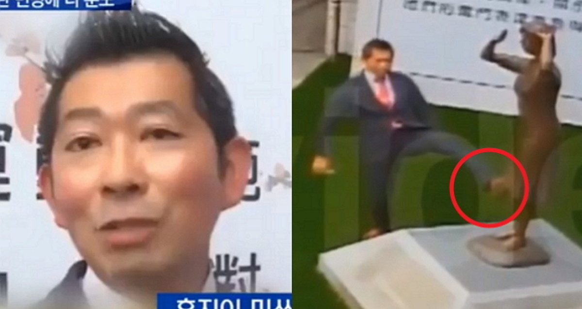 그런데 이달 6일 그가 위안부 소녀상에 갑자기 발길질을 하고 주먹질을 하는 영상이 공개됐다.