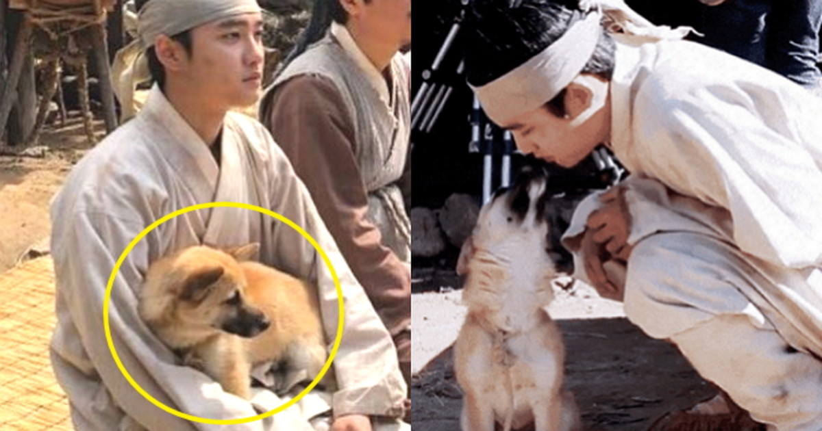 그중 강아지 덕구와 재밌게 놀고 있는 도경수의 모습이 보는 이의 시선을 사로잡았다.