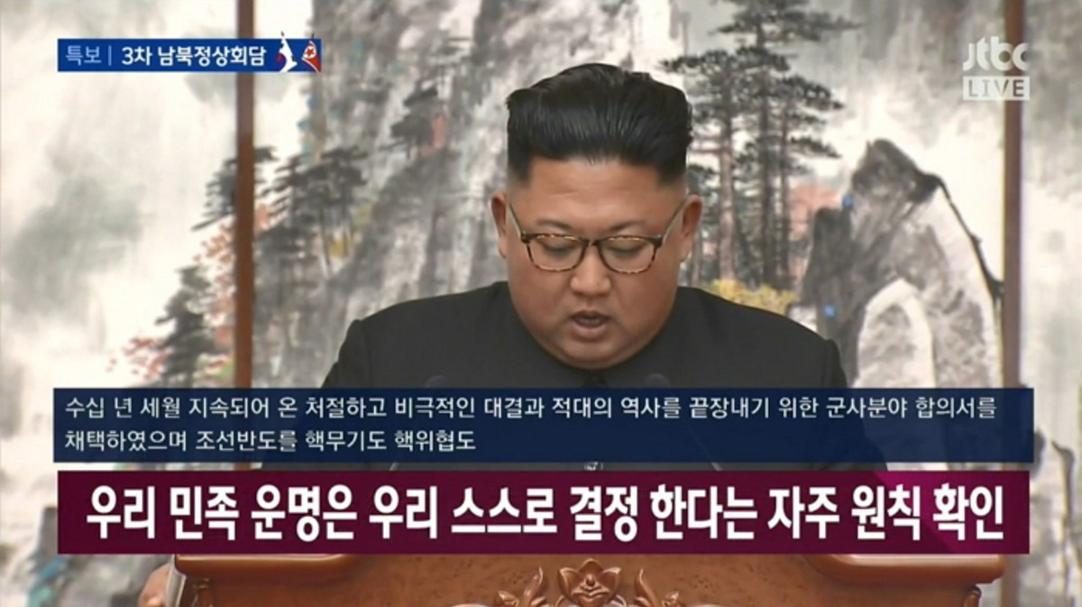 19일 김정은 북한 국무위원장은 평양 백화원 영빈관에서 '9월 평양공동선언' 서명식을 마친 후 가진 기자회견에서 이같이 말했다.