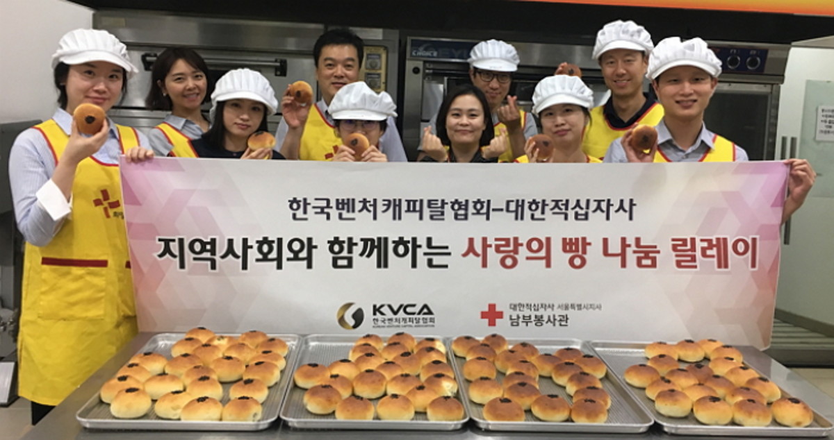 '사랑의 빵 나눔' 봉사 릴레이는 중소벤처업계 최초로 약 120여개의 벤처캐피탈 회원사들이 매월 돌아가며 빵을 만들고 지역 사회 내 도움이 필요한 이웃들과 함께 나누는 프로젝트다.