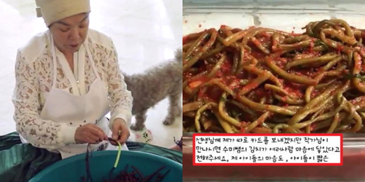 이에 김수미는 "제가 보내드리겠다. 많이 담아서 보내드릴 테니까 할머니도 추억하고 이웃분들과도 나눠서 잡수시라"고 김치를 보내겠다고 약속했던 바 있다.