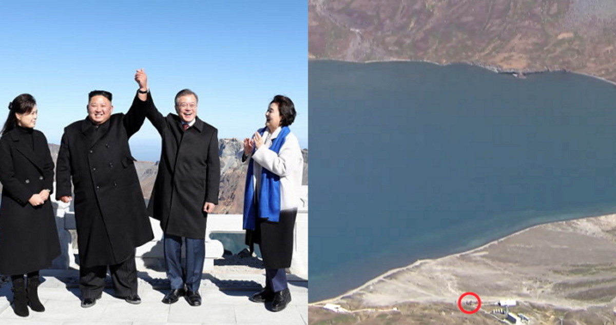 이날 카메라는 천지를 향해 이동하는 두 정상을 따라가면서 서서히 줌을 넓게 당겼다.