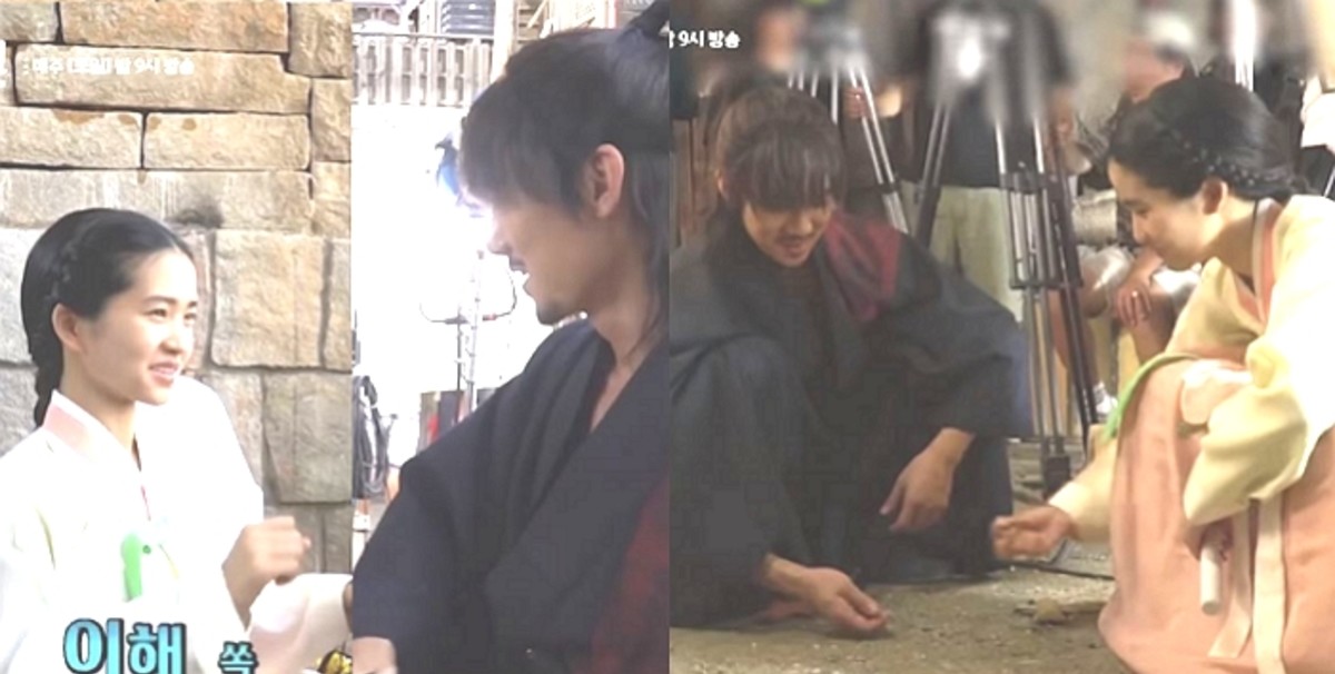 유연석과 김태리는 촬영 대기 중 모래바닥에서 돌멩이를 주워 같이 공기놀이하는 모습도 보였다.