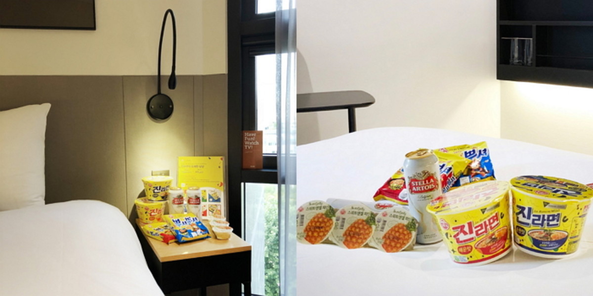 해당 에디션 스낵 박스에는 진라면 컵라면 큰 컵 2개, 뿌셔뿌셔 2개, 스위트엔젤 3개가 묶음으로 포함됐으며 스텔라 캔맥주가 제공된다.