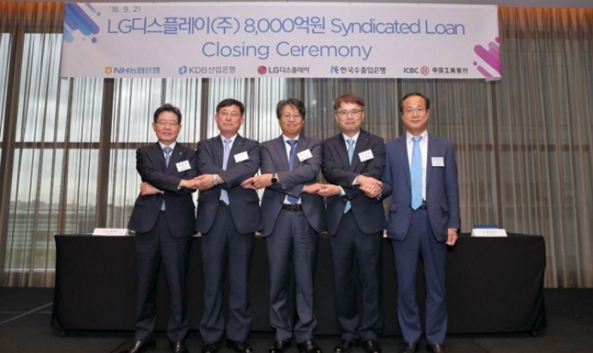 LG디스플레이는 이날 서울 여의도 콘래드 호텔에서 KDB산업은행, 한국수출입은행, NH농협은행, 중국공상은행 등 4개 금융기관으로 구성된 대주단과 8,000억원 규모의 신디케이트론(Syndicated Loan) 계약을 체결했다.