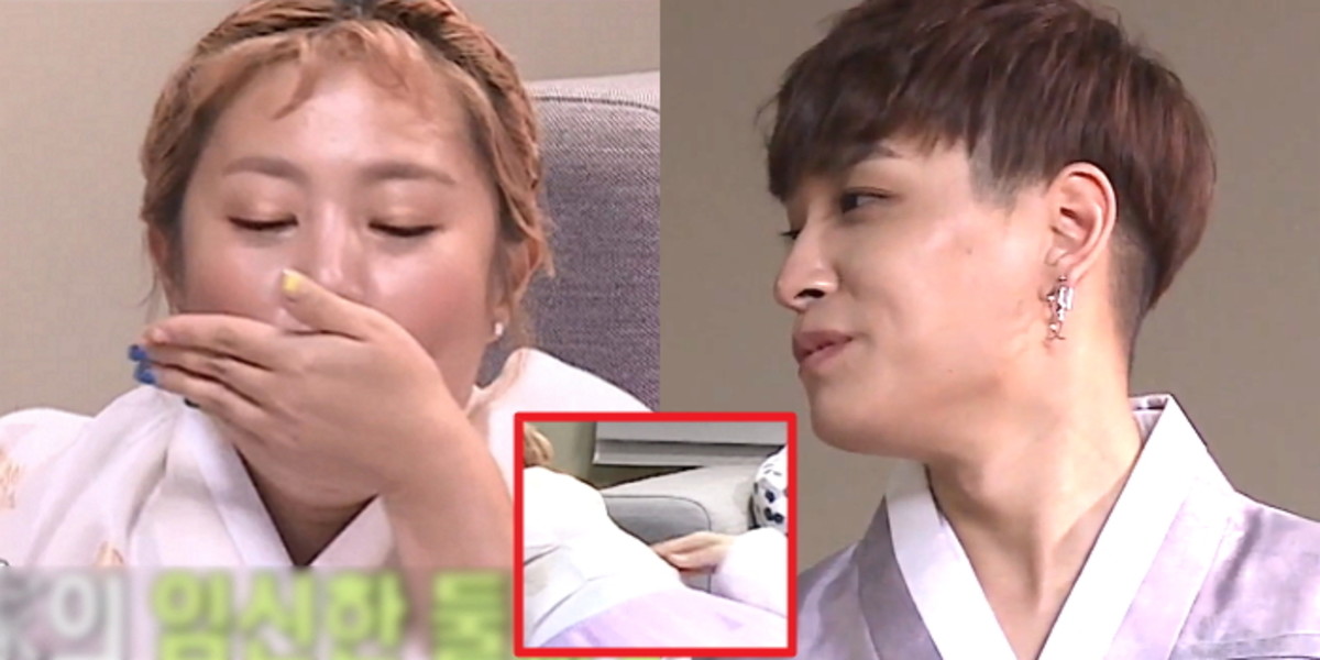 상황극 속 쌈디와 신혼부부인 박나래는 이야기를 나누다가 임신했다는 신호를 보이며 입덧하는 척했다.