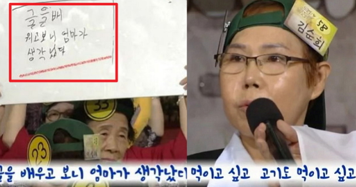 그는 "집이 가난해 아들에게 공부를 그만하라고 했더니 그 길로 집을 나갔다"며 아들을 찾기 위해 한글 공부를 시작해 방송까지 나왔다고 전했다.
