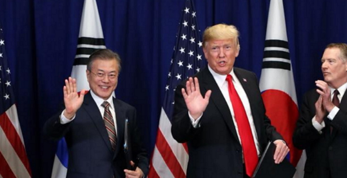 트럼프 대통령은 "오늘 서명식은 무역에 관한 것이지만 북한에 있어서도 긍정적인 변화가 이뤄지고 있다. 다시 한번 문 대통령과 한국 측의 협력에 감사하다고 말하고 싶다"고 전했다.