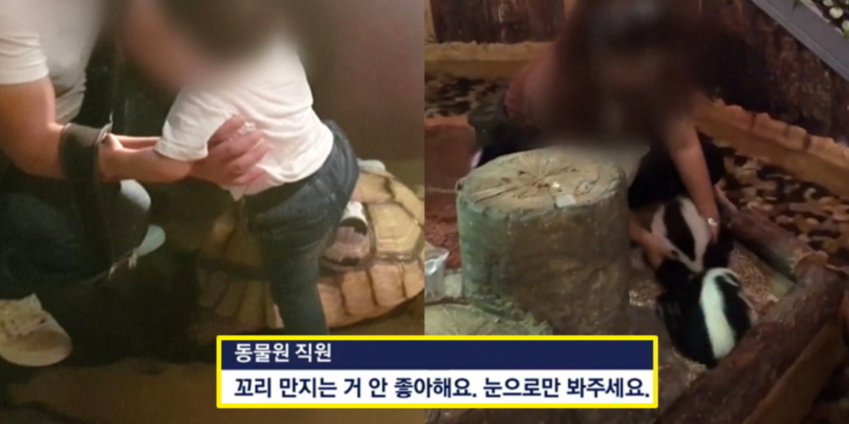 눈으로만 보라는 안내에도 동물의 꼬리를 잡거나, 이제 막 걸음마를 시작한 아기가 거북이 등에 올라타려는 모습도 포착됐다.