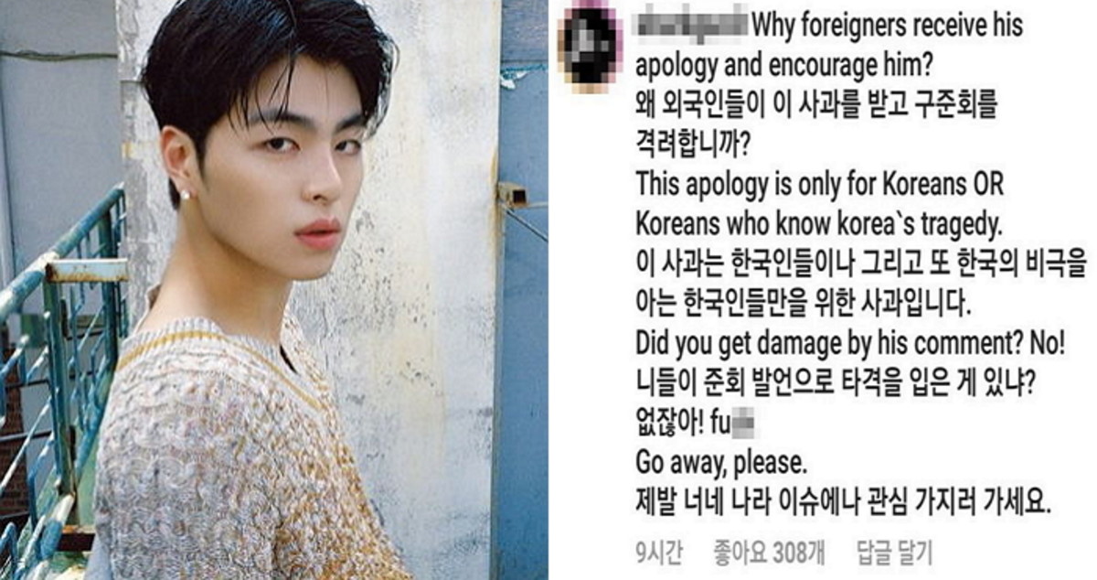 이에 또 다른 SNS 이용자는 "왜 외국인이 이 사과를 받고 구준회를 격려합니까? 이 사과는 한국인들이나 그리고 또 한국의 비극을 아는 한국인들만을 위한 사과입니다"라고 대응했다.