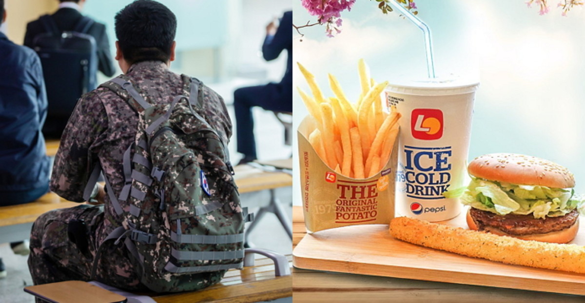 무료 햄버거를 받는 방법은 간단하다. 군복을 입고 매장에 방문하기만 하면 불고기 버거 세트를 '공짜'로 먹을 수 있다.
