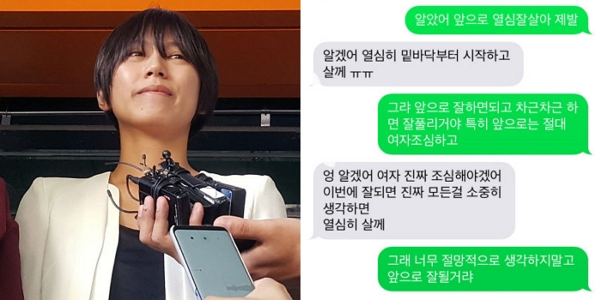 동생의 걱정 어린 문자에 스튜디오 실장은 "알겠어. 열심히 밑바닥부터 시작하고 살게", "여자 진짜 조심해야겠어. 이번에 잘 되면 진짜 모든 걸 소중히 생각하면서 열심히 살게"라고 답했다.