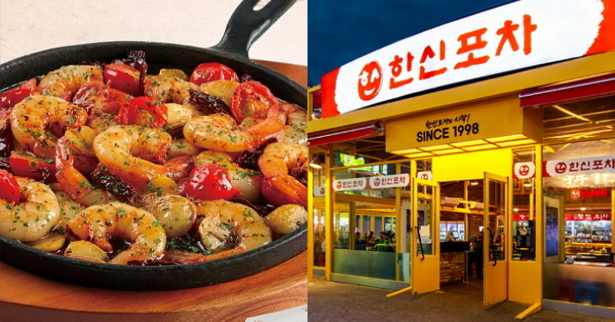신메뉴는 전국 한신포차에서 만나볼 수 있으며 가격은 감바스가 1만 3000원, 새우 강정은 1만 5000원이다.